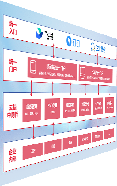 对协作平台提供支持服务,,支持企业应用与协作平台对接,,包含组织同步、、、、消息集成、、、待办集成等。。。。支持目前主流的协作平台:钉钉、、企微和飞书。。